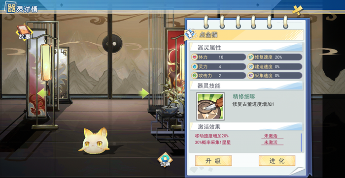 器灵是半盏复古行中十分重要的存在,采集物品和建造建筑都得用到它。除了采集物品,器灵还可以修复古董、攻击怪物。