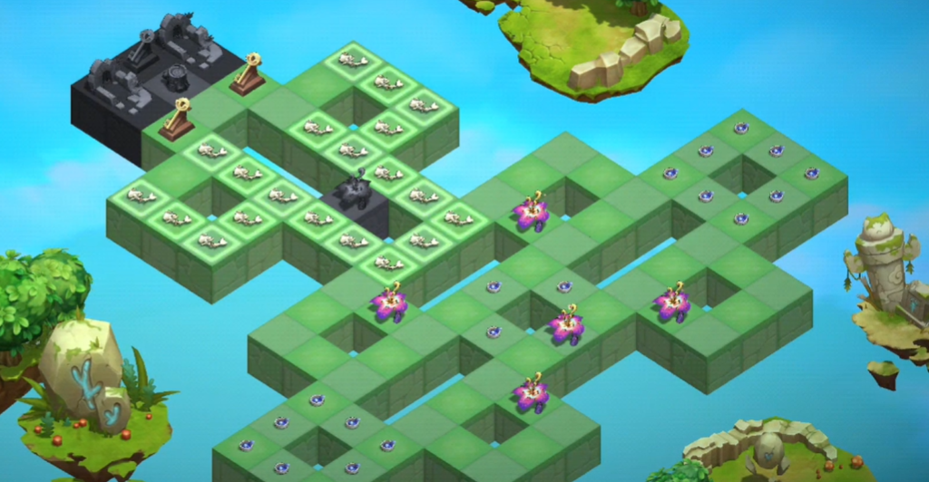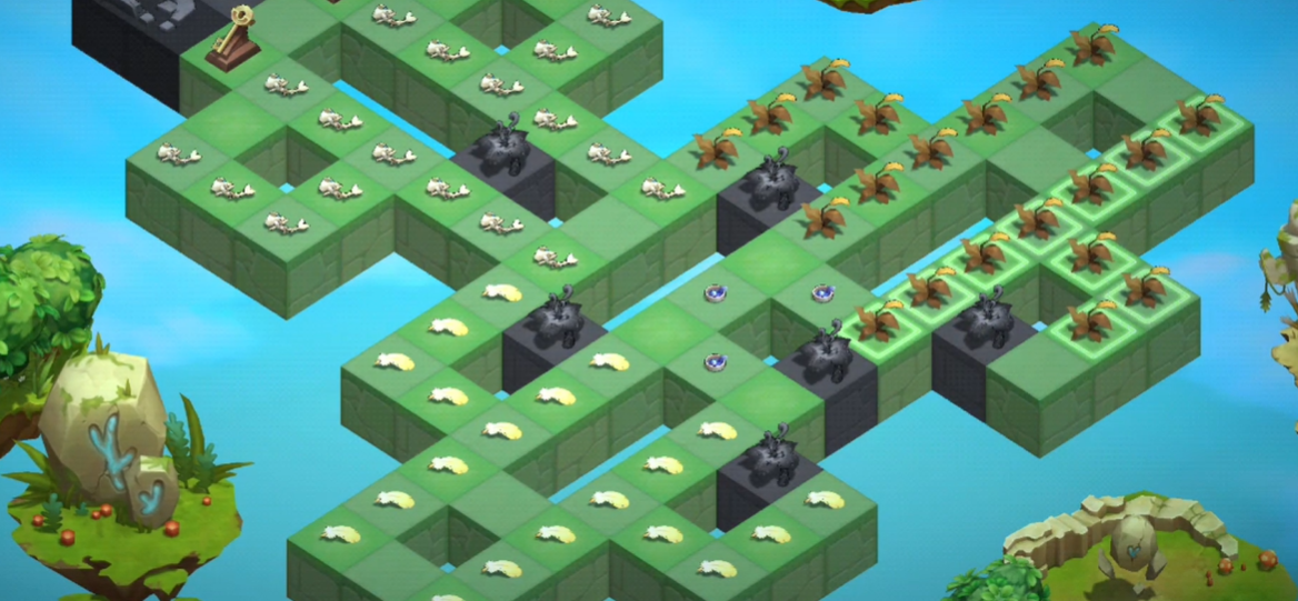 处理好左右两边,这下处理中心部分,将钥匙旁边这个骨头拖到对称轴位置处,这样中心也可以全部变为回忆之泉了。