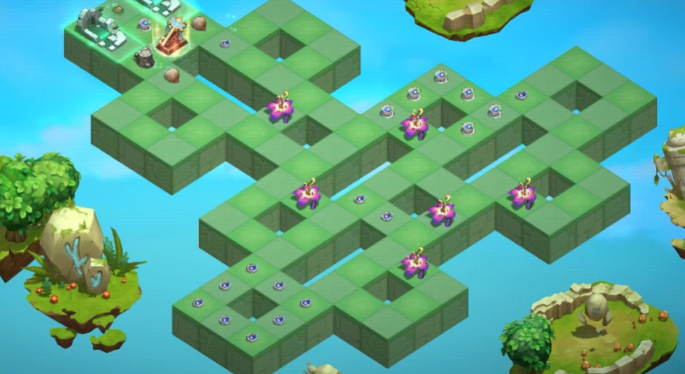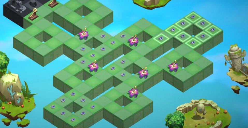 首先我们看到最右边这里,都是花,我们将右边中间的这朵花拖到中间的那个格子里就可以了,这样的话,右半边这部分就会全部变为回忆之泉,这部分就先可以放着不管了。