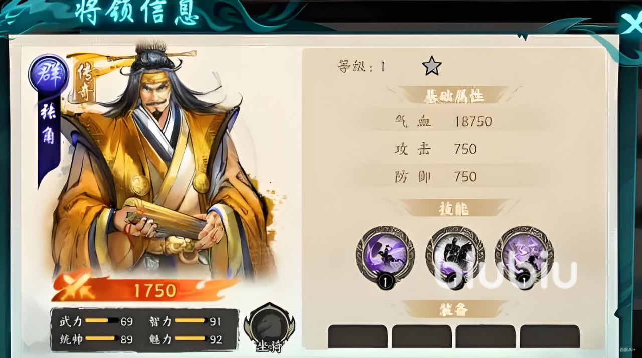 张角负责全队保护。他的怒气技能给全体主将加护盾,护盾量与自身气血相关,数值非常可观。而他最重要的被动是“黄天雷罚”,每15秒就会随机给三个敌人套上麻痹,等于全队都能无限吃到麻痹联动收益,越拖到后期效果越明显。