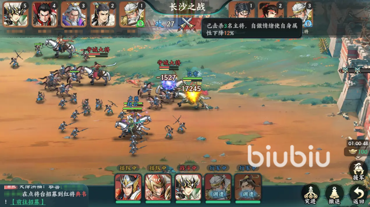 在其中,玩家可以优先去处理一些高收益的支线,这样就能快速的增加剩余时间,为己方的主力部队争取更多操作空间,而且援军系统也是非常不错的选择,其中的副本会为玩家提供大量免费援军,前期派遣低战力部队探路并激活所有可用援军是非常合适的选择,能帮助自身去有效牵制敌方火力,为主力创造突进的机会。