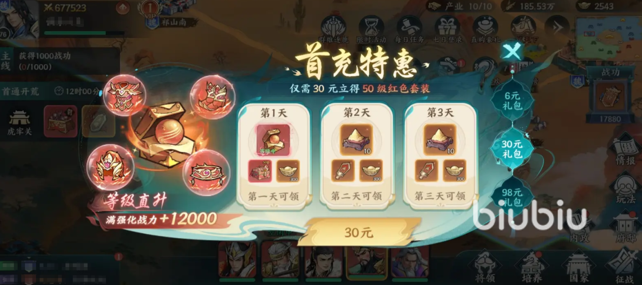 此外,对于小额付费玩家而言,其中的首充6元和月卡组合往往是最优解,这样就能让大家去快速的积累资源形成不错的战力优势,在前期的时候能让自己得到不错的表现,比如快速的集齐五虎上将阵容也是可以的。