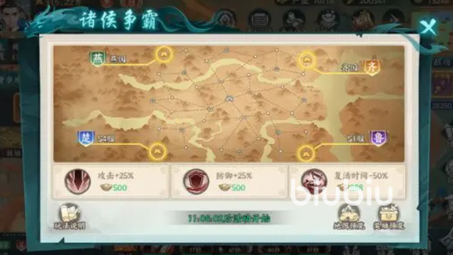 更高规格的跨服GVG活动,以区服单位组成阵营,然后在大地图上抢占城池夺取积分。每周一到周五会各开放一场,持续一个小时。需要开服30天并且等级大于等于60级才能参与,属于是中后期的核心玩法。这个城战玩法稍显复杂,需要参与的阵营以兵营作为据点发展,没有可攻城池都要与本阵营领地相连,因此要掌握断路、包围等战术,改变局面。