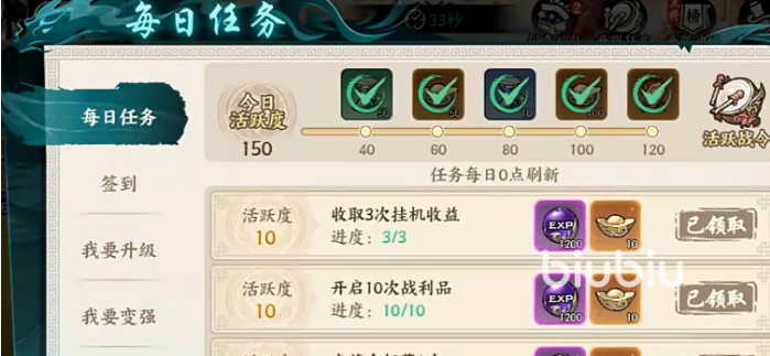 当然每日任务也很重要,虽然这个方式累积的资源不是特别的多,但是还包括别的收益,比如元宝之类的,可以优先选择能获得经验的任务,尤其是在卡着等级要突破的时候,有该方法的辅助,开荒期升级可以更加迅速。