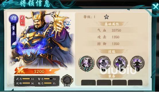 董卓是队伍的防御一角,怒气技能能够将伤害转化为护盾,16星解锁完全形态能让护盾量翻倍,配合被动雷电护体,可以和麻痹的效果作搭配,收到麻痹效果的敌人越多护盾也就越厚,最后一角就是吕布,范围伤害非常逆天,搭配被动贪狼的效果,在对手中了麻痹效果之后伤害能够显著提升,是队伍里面最强的输出。