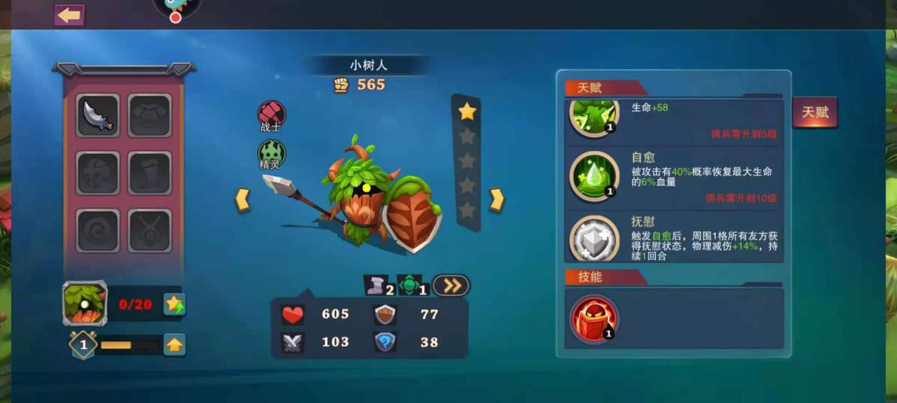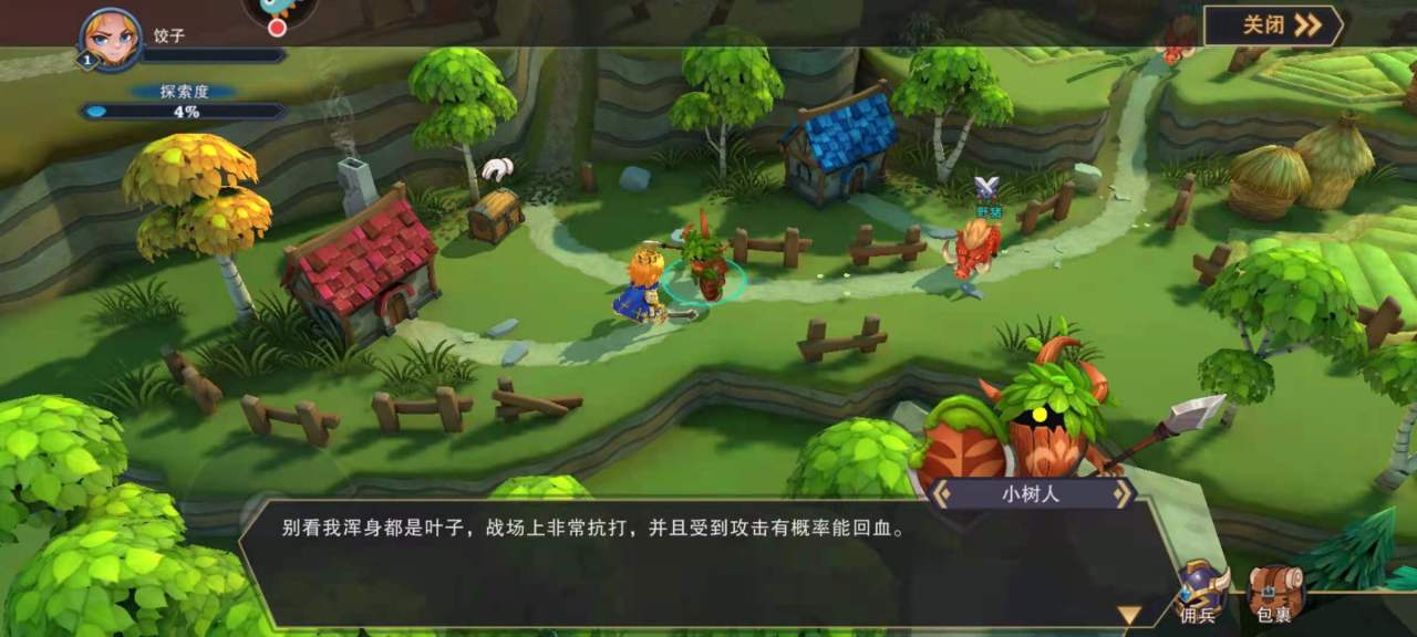 首先,当玩家打开游戏,游戏会指导玩家去完成一些简单的活动,然后就会获得一个小树人的雇佣兵,别看小树人浑身都是叶子,但是在战场上十分能打,并且受到攻击有概率能回血。