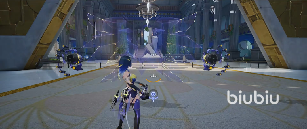 她使用常规技能时会开启力场护盾,力场有三个等级,还能进行回收,回收之后会根据等级提供额外的强化效果,如果子弹穿过了该时空力场,不仅会协同两侧的炮台对敌人进行攻击,还会逐渐提升时空力场的等级。
