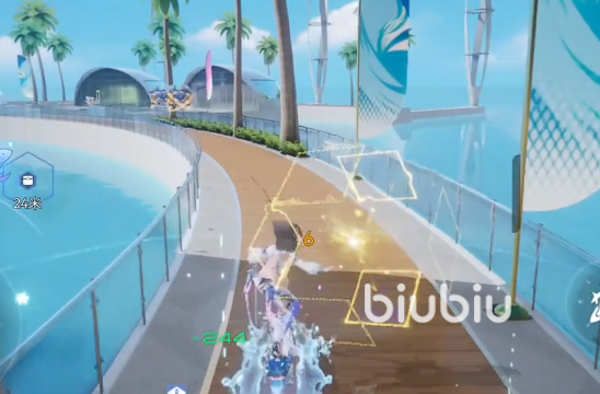 最后一个技能拥有对敌人使用高热水流造成两次伤害,第二次给到爆炸伤害的效果,在伤害结束后还会给到自身一个冲浪状态,进入到该状态后可以为自身添加一个护盾并且持续提升这个升浪值,这就是该角色的技能组了,可以看出技能还是相当不错的,强度很可以。