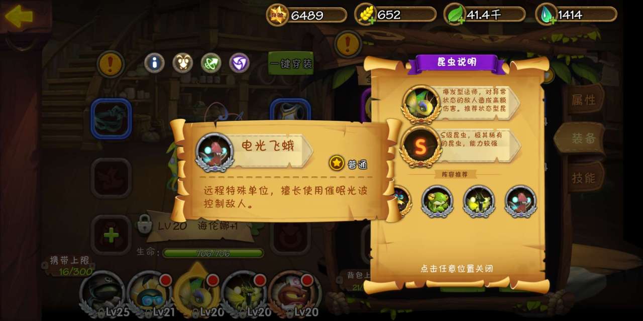 除了带有寄生效果的荧光飞蛾以外,还有擅长施加催眠效果的电光飞蛾。这两种飞蛾都是远程攻击的虫虫,能够与海伦娜打出很好的配合。