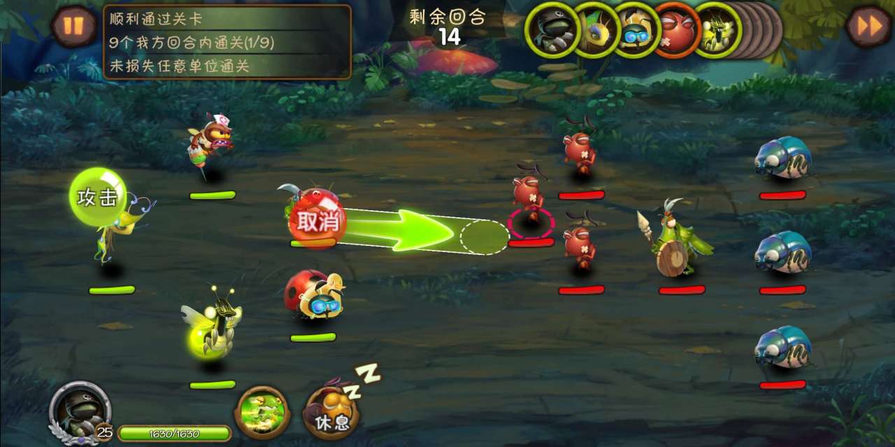 螳螂斗士在实战中需要注意的就是攻击方向和蓄力的把握。攻击方向决定了螳螂斗士此次进攻将会运动的轨迹,而蓄力则是螳螂斗士能够走完多少轨迹的前提。一般螳螂斗士都是往敌方扎堆的敌方发起攻击的,这样能够最大程度发挥螳螂斗士的效果。