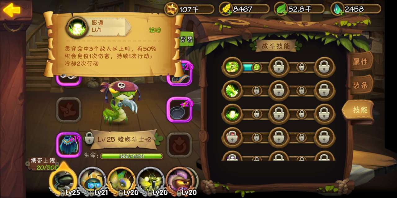 第二次进化会获得一个无敌技能,在螳螂斗士命中三个及以上敌人的时候,有50%可以获得一次无敌状态,免疫下一次收到的任何敌方伤害。这个技能在螳螂斗士血量比较不健康的时候,是可以起到保命作用的。