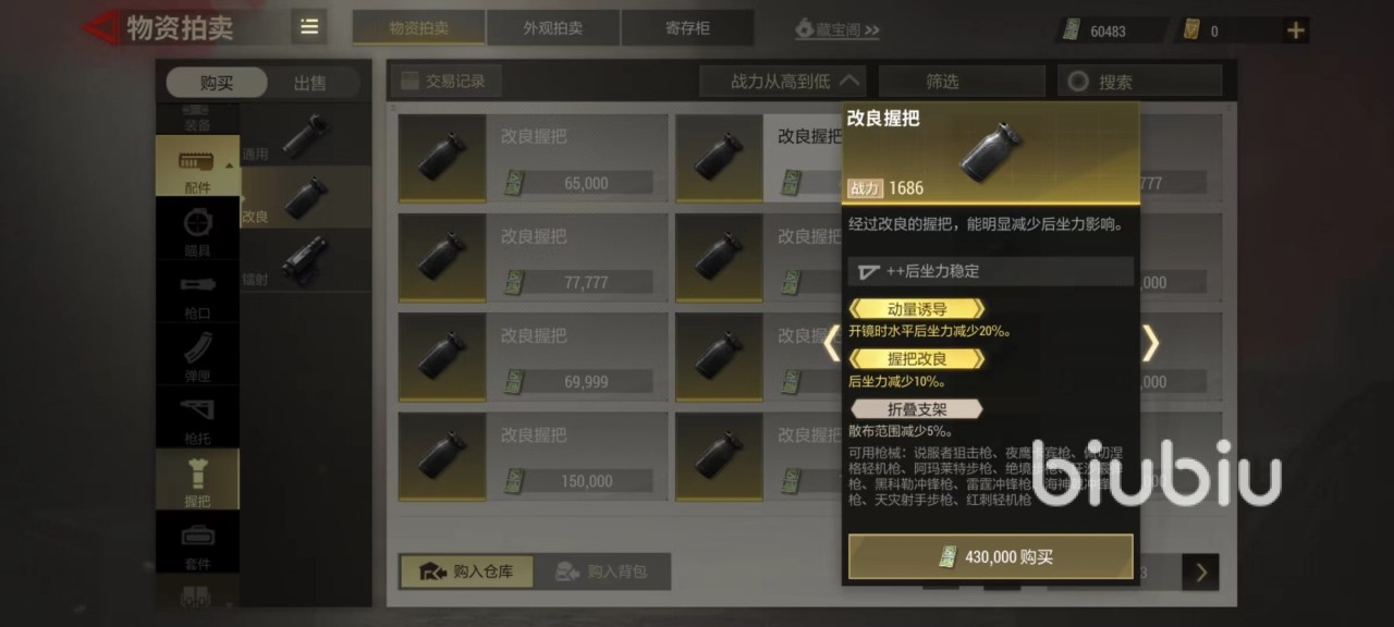 如果资源允许尽量选择八倍镜侧瞄具,这样增加一个侧瞄,能够应用于更复杂的战斗环境。接下来在其他配件方面,最关键就是握把,毕竟要稳定就要想尽办法降低后坐力。在所有配件中,无论是枪口或是枪托都不如握把更加直接,本身就能明显减少后座力影响。如果技能可以附加握把改良,则在此基础上再次降低,相同效果还有动量诱导,如果一款配件上这两种技能全都具备,一定要毫不犹豫拿下。