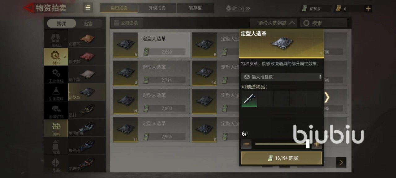 翻毛皮革是制作护具和背包的原材料,神盾战术护甲、专业背包和专家战靴都需要用到。定型人造革最大的特点就是用于制造八倍镜侧瞄,8倍镜侧瞄是现在顶级瞄具,能够自由调节放大倍数,是很多高级玩家必备道具。碳纤维打造的作用非常多,可以用来合成凯夫拉纤维,也可以制作神盾战术,护甲战术,背包等,还用于精准枪托和改良握把的制作。凯夫拉纤维是打造八倍镜侧瞄,4倍镜侧瞄和全面改装组合的顶级材料。
