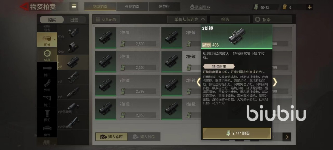既然是低配版,所以在配件选择方面尽量以绿色或蓝色为主,这样在主要效果上没有太大差别,但是附加属性品质相对较低,所以要通过各个方面来做到平衡。首先是瞄准镜的选择,因为低配肯定达不到最出色射击手感,不要采用4倍镜模式,全息或红点以及二倍都可以选择。小编推荐用二倍镜,既能够近距离战斗,又可以用于远程,最好属性带上精准射击,提高开镜速度和开镜时暴击伤害。