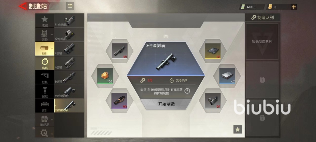 其余类型还有4倍镜侧瞄和8倍镜侧瞄,这两种瞄准镜都是在普通版本上进行强化,用途上比普通版本更出色些。除了具有普通版一切效果之外,还增加了一个侧面瞄准镜。放大倍率上可以根据需要自由调节,这样只需要一个瞄准镜,就能起到多重效果,适用不同战斗需要。这些配件都可以在安全屋的制造站中直接制造出来。