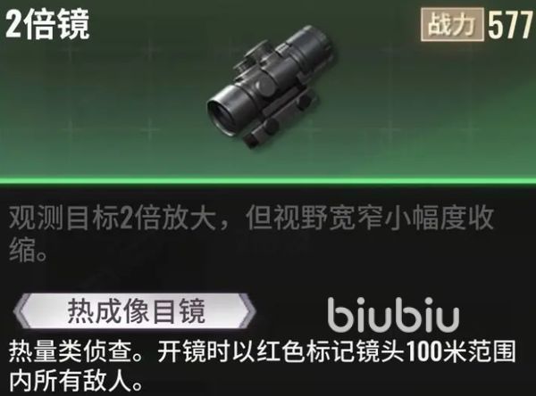 热成像目镜:把它和二倍镜搭配一下,可以快速发现敌人,比较适合中距离攻击敌人。搭配这个词条后,在角色打开倍镜的时候,只要周边范围100米以内有敌人的话,它就会用红色的标记体现在大家面前,这样就更容易搜寻敌人了。