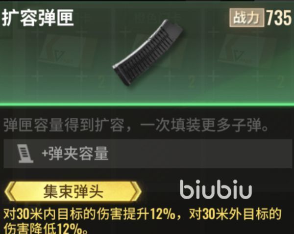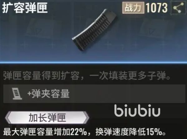 加长弹匣:使用该词条就可以让角色在作战的时候保持持续稳定的输出了,不让大家在战斗的时候出现掉链子的情况,可以让最大弹匣容量直接提高22%,但是也因为如此使得大家在游戏中换弹的速度会降低15%。