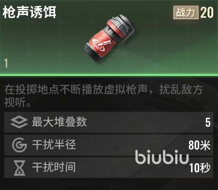此处主要说明的是两个诱饵类的道具,它们的主要效果就是会模拟对应的声音,来扰乱对方。其中有个是模拟枪声的,你们可以将其丢到指定的地方,之后在那个范围中就会循环播放枪声。