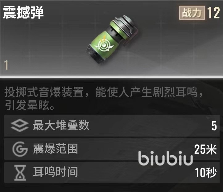 这个其实就是一件投掷类的道具,玩家在将其使用并丢出去之后,其就会在以落地点为中心,对周边半径为二十五米的范围产生音爆效果,这会让在此区域中的人产生眩晕效果,同时会短时间内听不见。