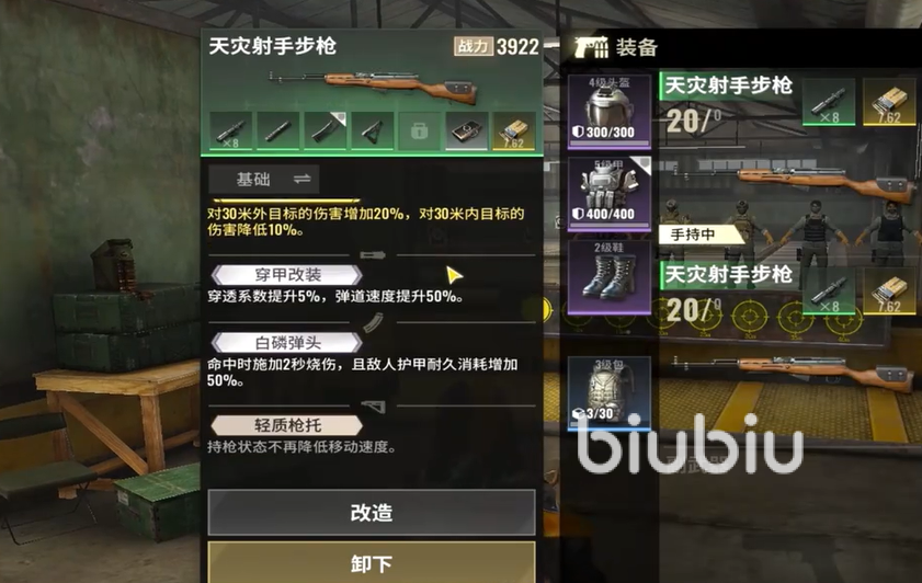 想要便宜并且还伤害高的重点所在就是穿甲改装搭配上白磷弹头,在五级弹的基础上搭配白磷弹头是能够击中头部直接阵亡的,虽然直接伤害只有98点,可基于燃烧的效果也能实现满血的击杀,如果是击中身体的话也仅仅需要两枪,击中手臂、脚、腿的话需要三枪或四枪,而作为平民套想要以最便宜的价格去逆袭五级套的话,重点就是白磷弹头两点伤害的补充。