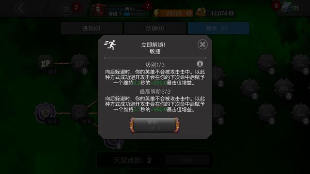 2、敏捷:可开启特效增加攻击的爆击率。当对手攻击或者解放技能快贴身的时候,快速左滑显示屏,闪避对手的技能与攻击。开启敏捷提供的增益特效,尽管各位全都是这款游戏的新手玩家,但是大家应该是游戏老玩家了。大家多试验,多寻找方法,做到眼速和反应力同歩,这是最好的搭配。