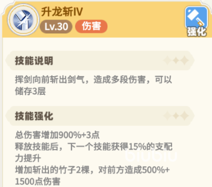 剑盾的音速斩能快速斩出一道剑气,对前方敌人形成输出值,消耗50点怒气可以消除本招式的冷却时长,他的光速斩会向前刺击,并且释放出剑气对前方造成多段伤害,成功命中还会追加浮空攻击,他的升龙斩可以进行储存,最多可存储3层,向前斩出形成多段伤害。