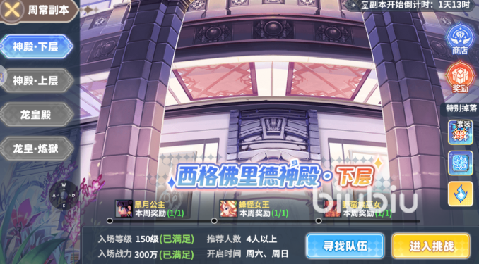 分为下层和上层,每一层对应3个BOSS,下层的boss有黑月公主、蜂女王、野蛮族巫。下层难度不大,甚至不用组队就能过,过了之后会给到翻牌子的机会,有概率获得西格佛里德套特殊装备,古代石板,以及西格佛里德之魂。