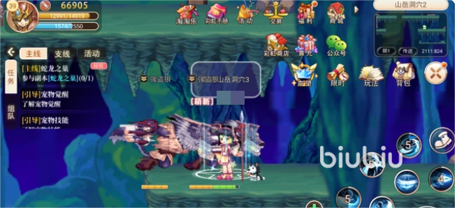 山岳洞穴也需要玩家通过图鉴才能过入内,在图鉴内选择的黑发妖狐。直接传送找到他,玩家看到怪物不要想一战为快,要记得我们是来找隐藏地点的,因此玩家们一定要把握好。看到怪物后也需要在怪物所在地的位置找一找,但是这个比较简单玩家一眼就能够看见头上的梯子,玩家爬上梯子就会来到山岳洞穴。