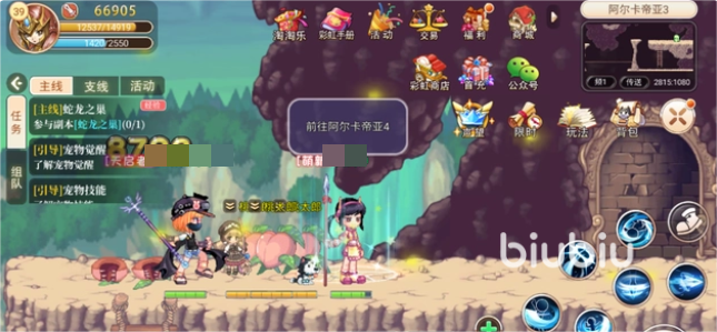 阿尔卡帝亚依旧是通过图鉴,找到白虎进行传送,这个地点非常的好找。找到白虎之后就可以看到新增的传送阵,玩家踏入传送阵立刻到达我们寻找的阿尔卡帝亚这个地点,这个地点当中不仅拥有白虎还有龙猫小弟还有桃太郎。小伙伴们如果有任务需要收集这些怪物击败的掉落一定不要忘记。