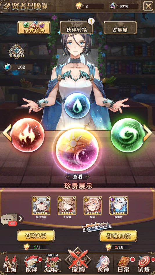 3、每次召唤必定获得贤者结晶,贤者结晶可在贤者商店中兑换珍贵伙伴4·每次召唤必定获得转换卷轴,转换卷轴可在伙伴转换中转换同属性伙伴。