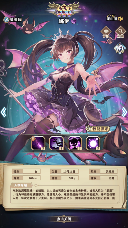 6、暗属性娜伊:娜依和卡诺诺一样,同样是游戏中的人权角色之一,卡诺诺的特性是禁止敌人回复怒气,而娜依的特点是禁止敌人回复血量,同时自身还有非常高的爆发输出,因此把她放在这个位置既有输出也有减溢效果了。