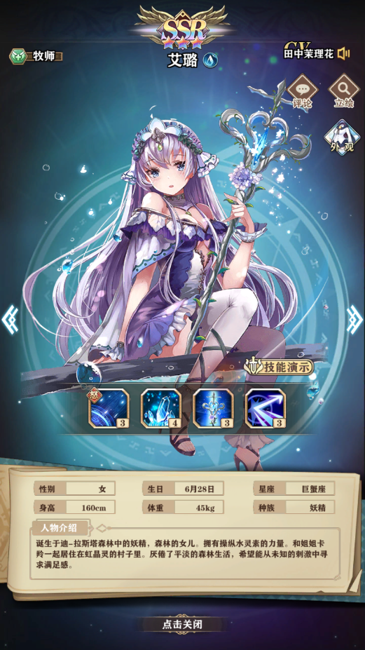 1、水属性艾璐:艾璐和其他角色相比可能要逊色一些,不过艾璐的获取门槛低容易培养,并且不吃资源在游戏前期九游很好地表现。