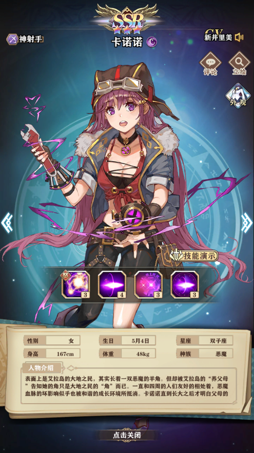 2、娜依:娜依和卡诺诺一样,同样是游戏中的人权角色之一,卡诺诺的特性是禁止敌人回复怒气,而娜依的特点是禁止敌人回复血量,同时自身还有非常高的爆发输出,因此把她放在这个位置既有输出也有减溢效果了。