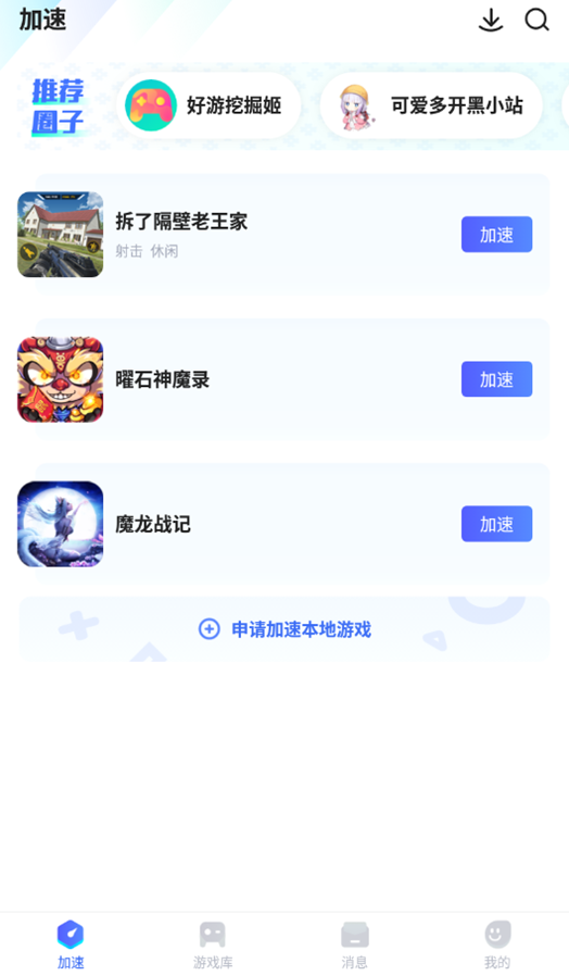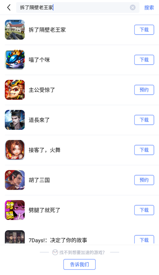 下载拆了隔壁老王家只需打开Biubiu加速器后,在右上角搜索框中输入“拆了隔壁老王家”,在下方的搜索结果中找到游戏,点击右侧下载即可开始下载游戏安装包。