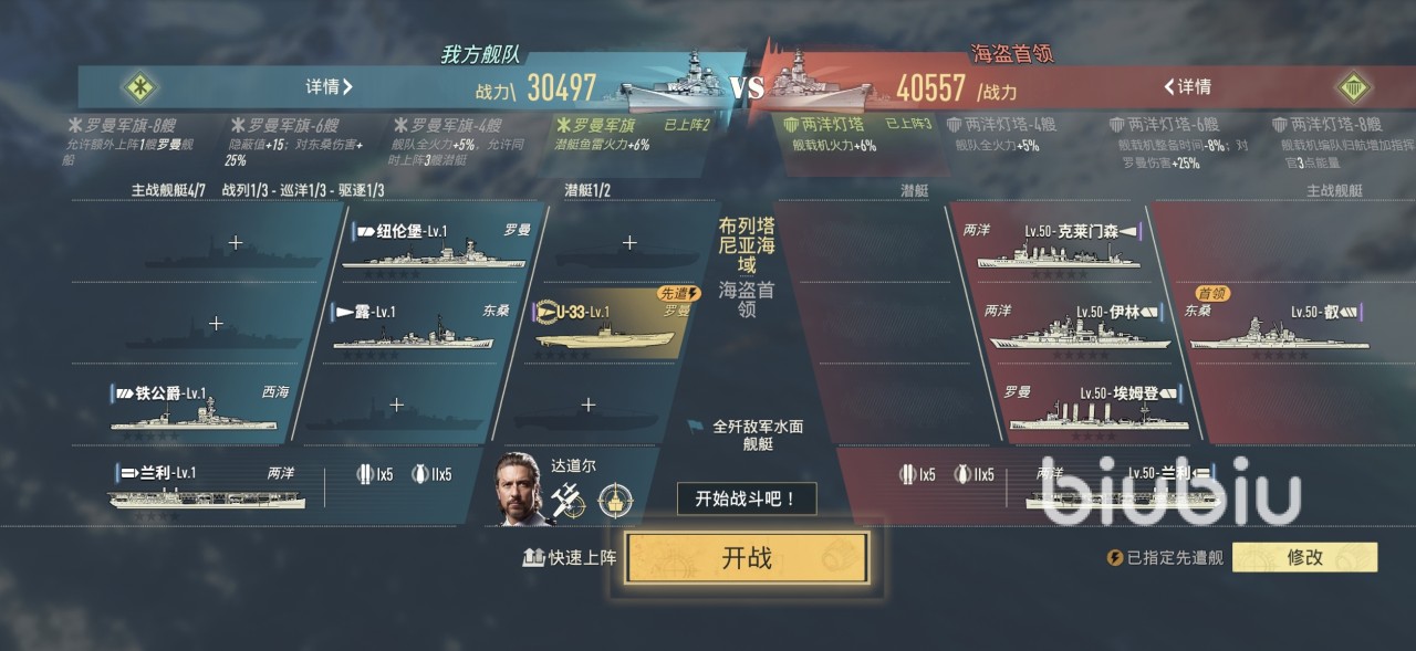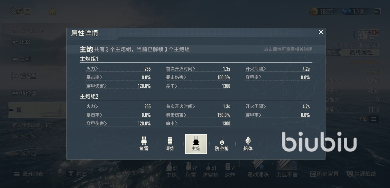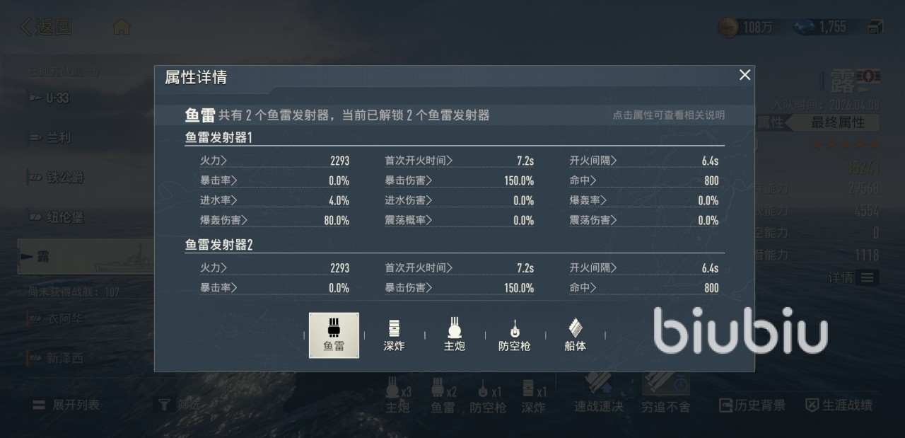 在武器装备方面,这艘舰船最具有代表性的莫过于自身的两组鱼雷,还有三组主炮和一组防空枪以及一组深水炸弹。因为出于游戏平衡性的需要,并没有太过强化鱼雷方面的输出能力。不过两组鱼雷发射器无论是在火力、间隔以及进水率等方面都非常优秀。再加上还有深水炸弹,也能够克制对方的潜艇,所以是一艘能力非常全面的驱逐舰。技能方面,当其耐久值高于半血时鱼雷输出提升,己方战列舰主炮火力提升。战斗开始时敌方战列舰数量越多,前两轮鱼雷开火间隔时间就越短。可以利用好这些优势,在开局直接发射鱼雷,重创目标。