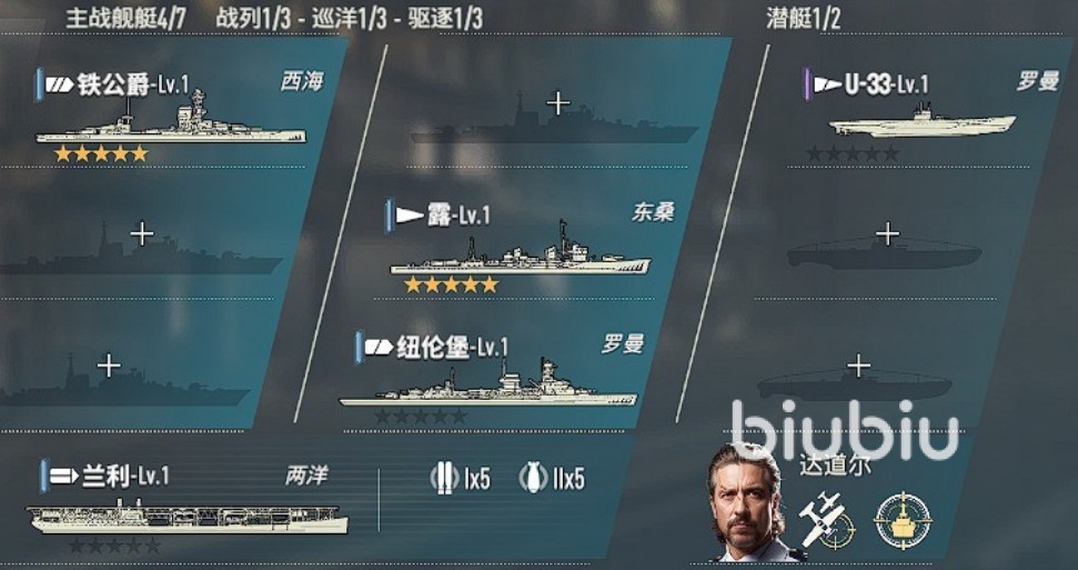 阵容组成:铁公爵+露+U-33+纽伦堡+兰利