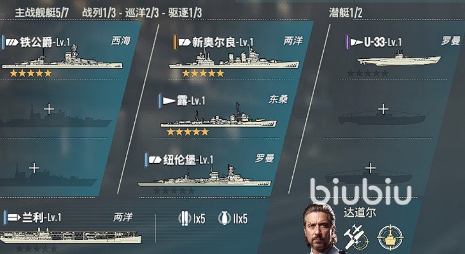 阵容组成:铁公爵+露+U-33+纽伦堡+兰利+新奥尔良