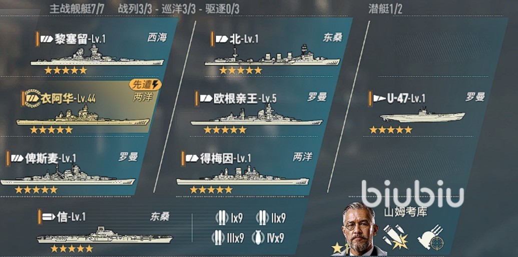 阵容组成:衣阿华+北+俾斯麦+欧根亲王+U-47+黎塞留+得梅因+信