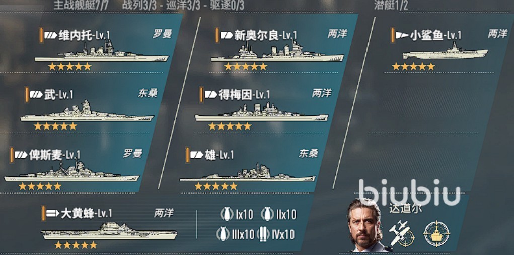 阵容组成:维内托+新奥尔良+小鲨鱼+俾斯麦+武+得梅因+雄+大黄蜂