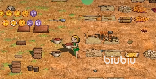 该游戏中大家将会扮演一位原始人生活在史前文明,需要在史前的环境中生活下去,在这个过程中大家需要做的事情有很多,首先需要做的就是学会收集资源,这收集资源对于沙盒老手来说肯定是再熟悉不过的,不过对于一些有接触但是接触不多的小伙伴们来说还是需要去了解一下的,游戏中资源大致分为两种,第一种是食物资源。