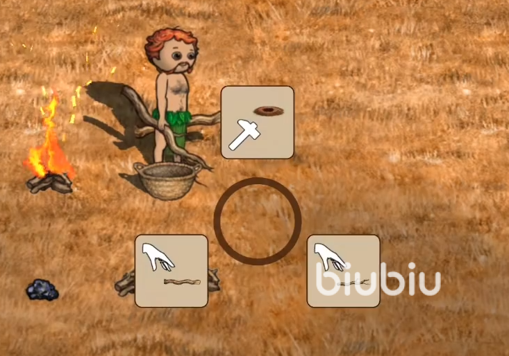 地上会有着一些木材和石头,这些记得将其给收集起来,石头记得收集一些尖锐石头,因为此类型的石头可以帮助我们切割一些物品或者植物,一些小型的木材也是可以切割的。