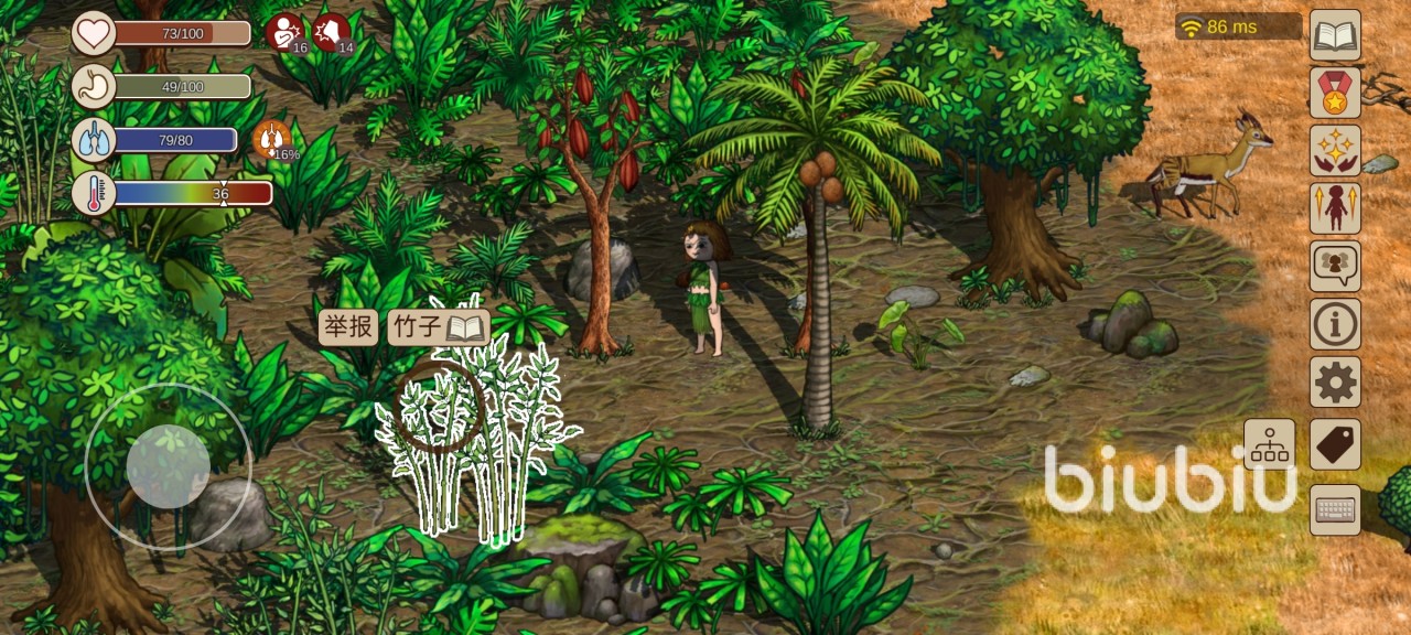 雨林地的资源分布各有规律,水果资源多集中在林间空地或树木密集的区域,竹子和木材则需要深入林中采集,而陶土大多分布在潮湿的泥地带,建议玩家在探索时合理规划采集路线,避免在复杂地形中迷路或浪费时间。