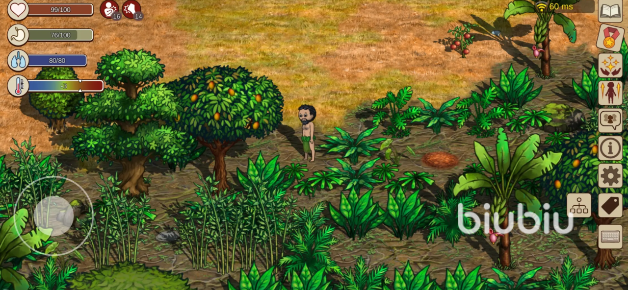 雨林是获取香蕉、芒果、巧可、竹子等材料的关键地,玩家如果光脚站在雨林的土地上会收到伤害,所以前期进出一定要快,后面解锁鞋类穿上后就能畅通无阻,沙漠在地图的最边缘,是收集青铜矿、锡石矿、茄子、无花果等物品的地方。