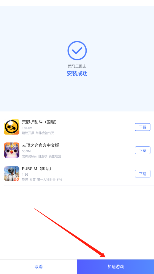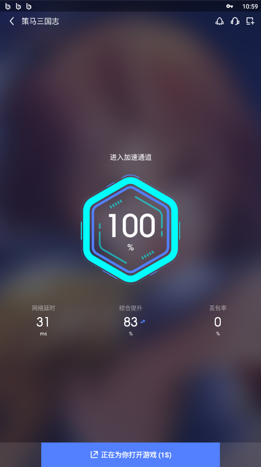 开始加速后,玩家只用等待加速进度到百分之百,而不用返回桌面去手动打开游戏,biubiu会在加速完毕后自动跳转并进入游戏。