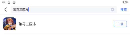 进入搜索的页面后,输入“策马三国志”,然后点击该游戏右边的下载按钮。