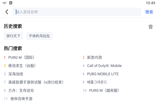 先打开biubiu加速器,在首页或者是游戏库页面,点击进入搜索页面。