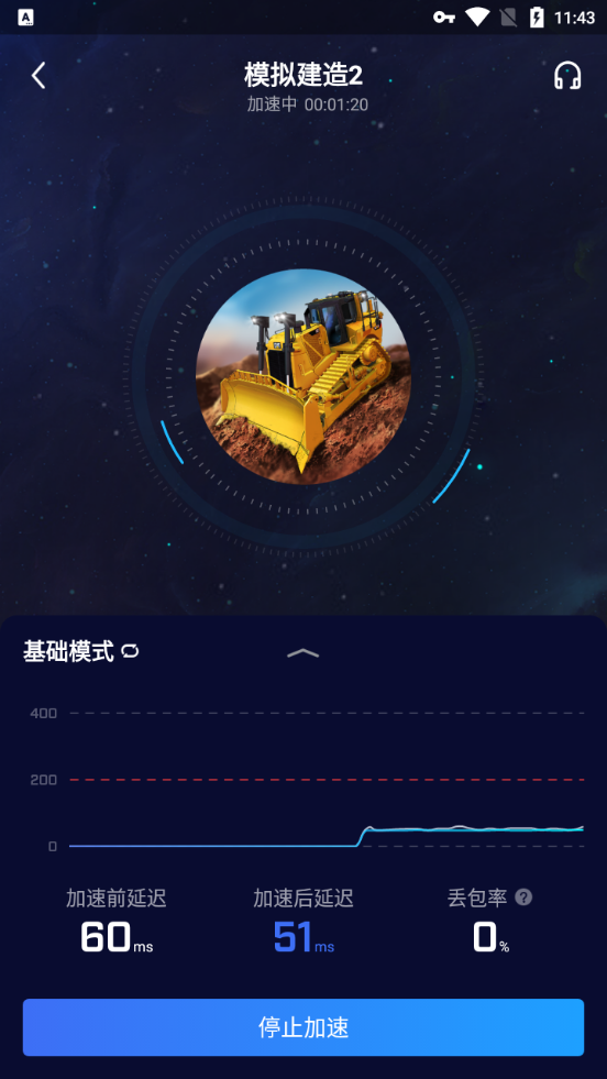 进入加速的界面后,大家可以从这里直接打开游戏,并且可以看到网络加速的实时效果,对比两条网络延迟走线,可以看出经过biubiu加速后的网络变得更加稳定和快速了。