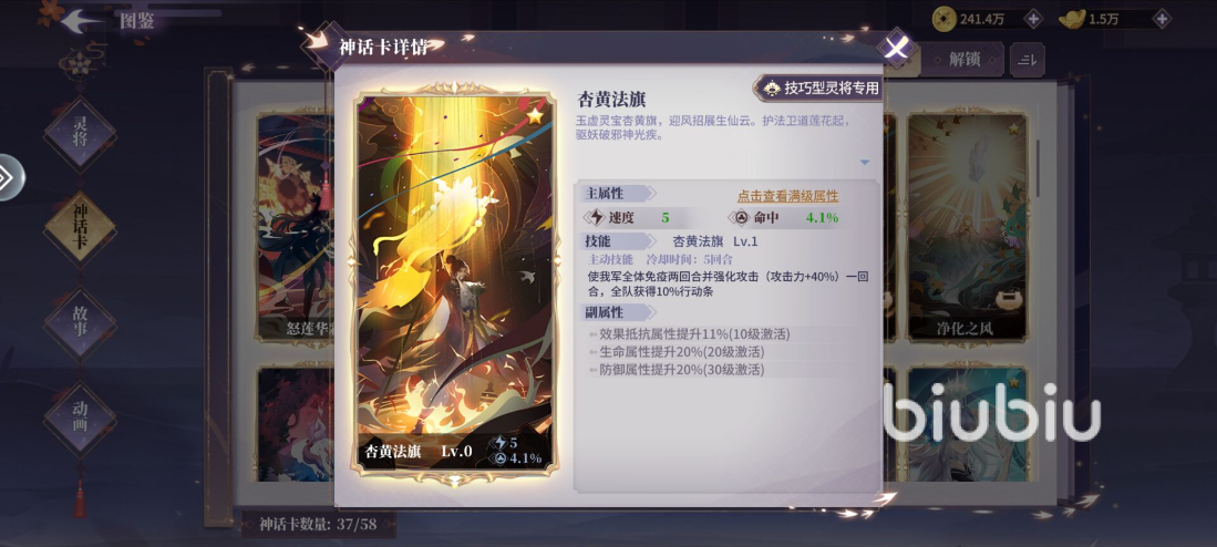 1、杏黄法旗:无论是主属性还是副属性和该角色的契合度都非常的高,使我军全体免疫两回合并强化攻击,全队获得行动条,因此可以很大程度提高队伍的容错率。