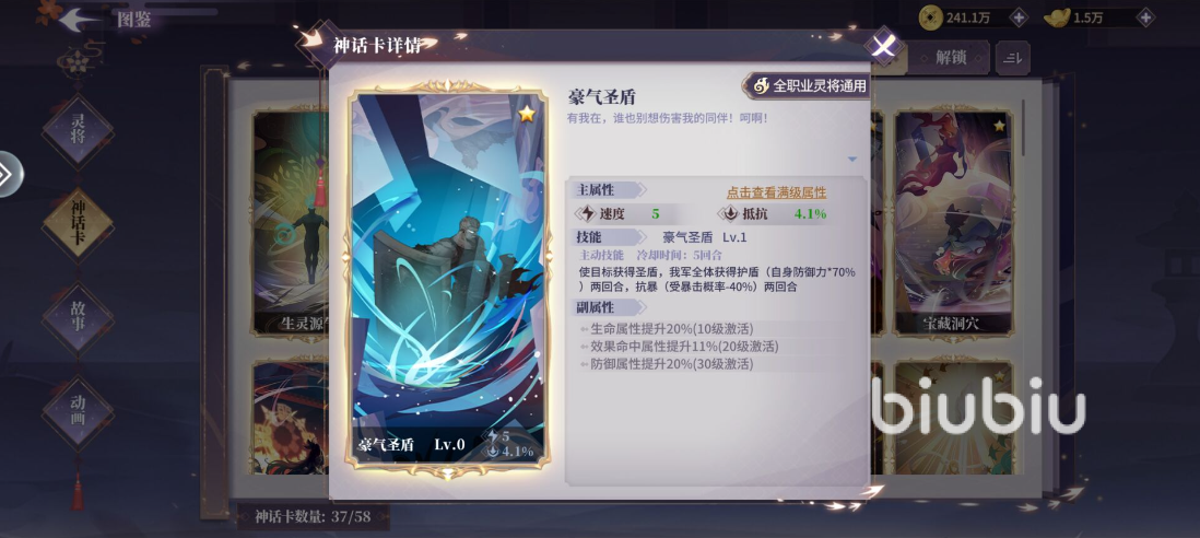 2、豪气圣盾:主属性和副属和该角色的契合度都非常的高,该效果主要是强化队伍的生存,圣盾可以免疫一次攻击伤害,和抗暴减少受到的伤害,效果还是很突出的。