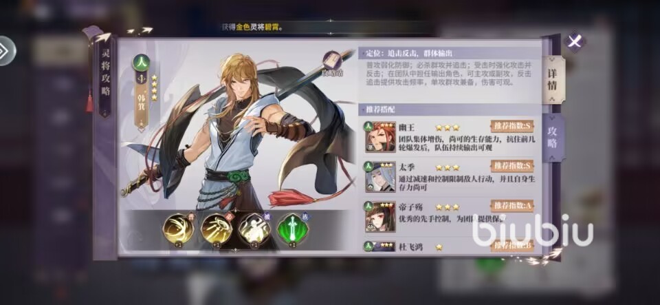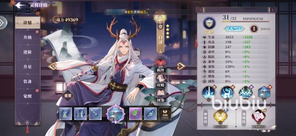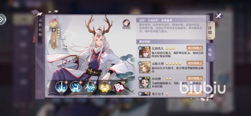 另一个紫色灵将是白泽,其实相比之下白泽才是更加实用的紫将,千万不要觉得他是防御型灵将就无情抛弃,我们始终需要一个防御型的肉盾在前方为我们挡伤害和施加护盾效果,而输出位置的灵将有很多,大家又热衷于追求橙色的输出,所以紫色的白泽会陪伴我们更久。